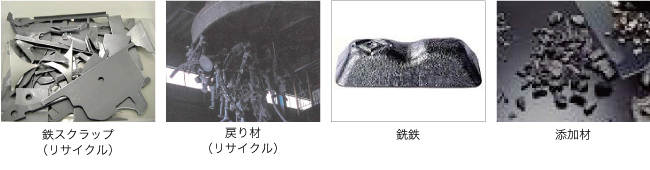 一般的な鋳鉄は、鉄・炭素・シリコン・マンガン・リン・硫黄で構成されています。強度特性、耐食性、耐摩耗性などを高める必要がある場合には、ニッケル・クロム・モリブデン・銅などの合金元素を添加しています。また、原材料としては鉄スクラップや戻り材(製品以外の部位)といったいわゆるリサイクル材を主に使用しています。鋳型材料も大部分が再利用されており、鋳鉄鋳物は循環性に富み、環境負荷の小さい製品です。